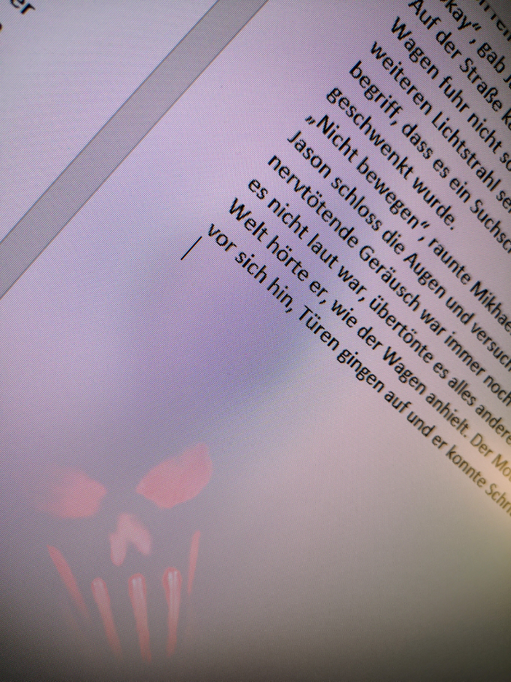 Erst wenn ich mit der Szene durch bin, lehne ich mich zurück und nehme wieder Abstand zu den Ereignissen, richte meine Brille und trinke einen Schluck. Dann lese ich das Geschriebene, korrigiere, bringe Worte in eine andere Reihenfolge, schiebe Sätze hin und her, streiche und formuliere um.