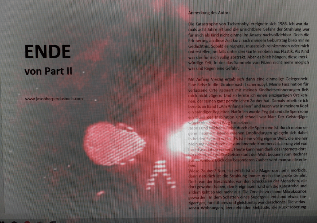 Jasons Reise in die Sperrzone, alles was sich in Kiew ereignet, leitet zu den Ereignissen in Band III. Es ist für mich eine magische Reise gewesen, bei der ich vor meinem inneren Auge diesen besonderen Ort noch einmal besuchen durfte. Und noch zauberhafter ist, wie sich alles ineinanderfügt.